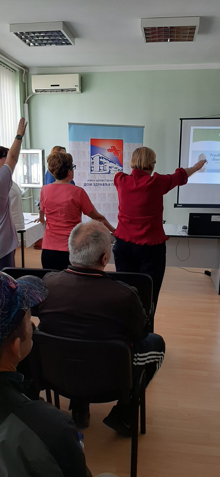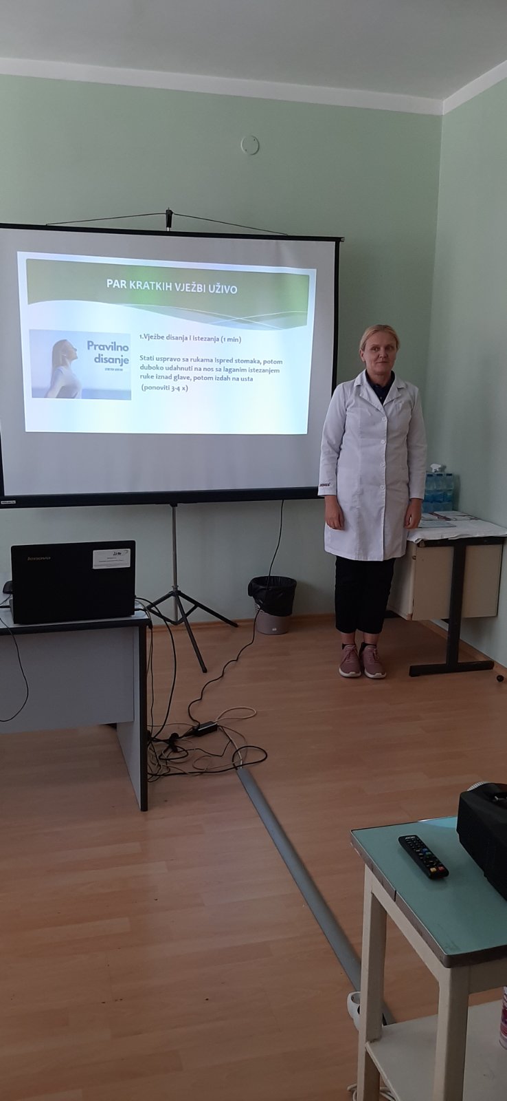 Prisutnim su pokazane vježbe uz pomoć dr Jelene Rudnički Kondić, specijaliste porodične medicine, koje se mogu svakodnevno raditi, jer ne zahtjevaju puno vremena i prostora, a imaju izuzetno pozitivan učinak na zdravlje.