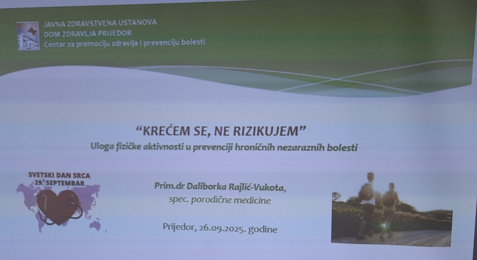 26.09.2025. je u Javnoj zdravstvenoj ustanovi Dom zdravlja Prijedor održano prvo predavanje Centra za promociju zdravlja i prevenciju bolesti, kao najava niza aktivnosti povodom obilježavanja Svjetskog dana srca.